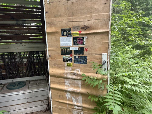 ”A Summer Storm” was installed in several outdoor and pub toilets, at four different events, during summer 2025. The artwork, consisting of fifteen stickers, tells a story of a sudden summer storm, music, friendship, and community.